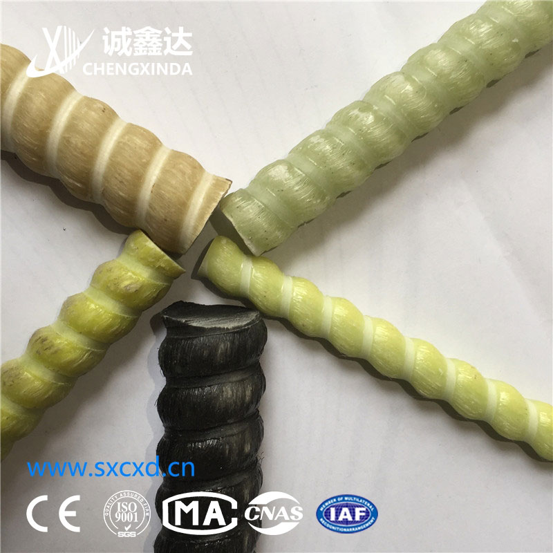 玻璃纖維筋:以高強(qiáng)玻璃纖維為增強(qiáng)材料,以合成樹脂為基體材料,并摻入適量輔助劑復(fù)合而成的復(fù)合材料,稱為玻璃纖維增強(qiáng)塑料(英文縮寫:FRP)俗稱玻璃鋼鋼筋。主要有“玻璃纖維鋼筋”和“玄武巖纖維鋼筋”。 (Φ6mm~Φ36mm)