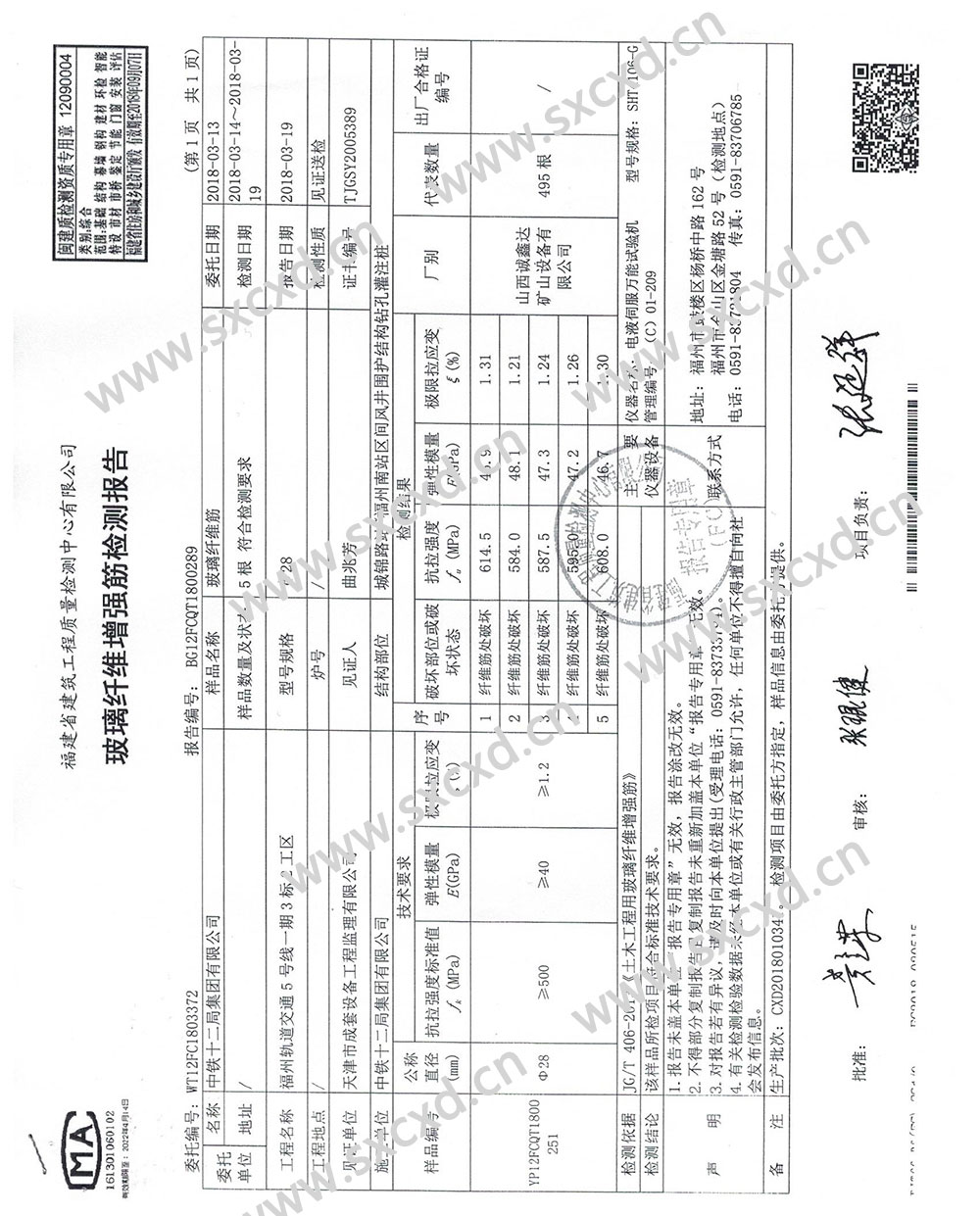 玻璃纖維增強(qiáng)筋檢驗(yàn)報(bào)告