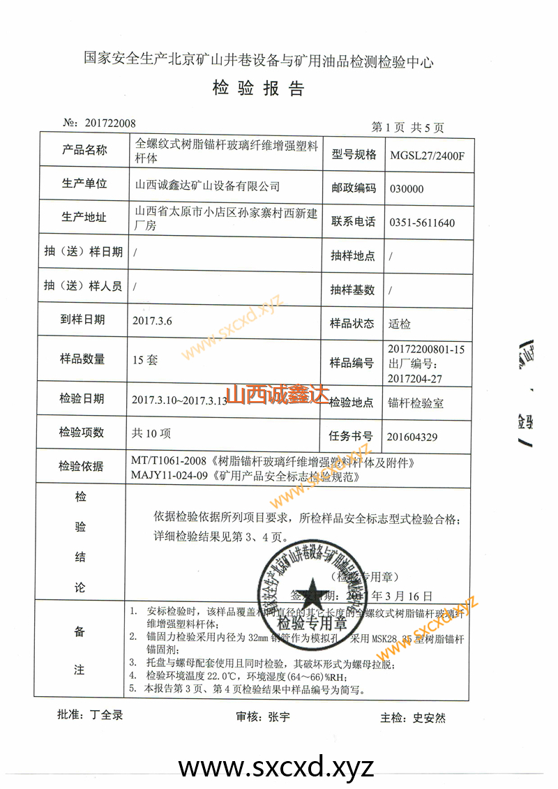 27玻璃鋼錨桿檢驗(yàn)報(bào)告