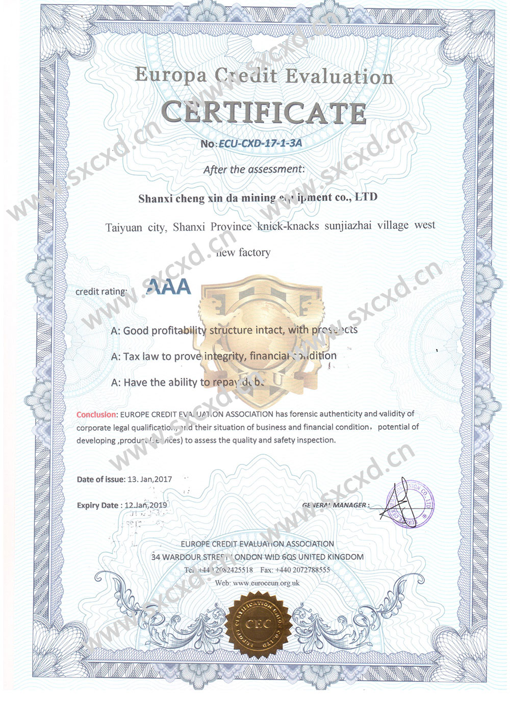 山西誠鑫達(dá)CE認(rèn)證英文