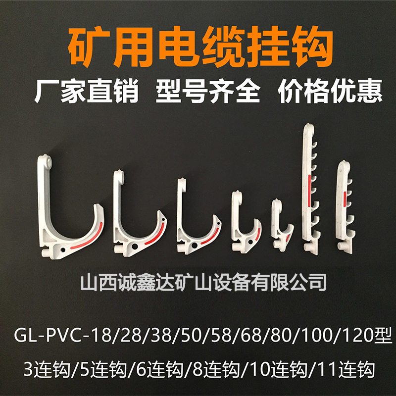 礦用電纜掛鉤主要包括:18型、28型、38型、50型、58型、68型、80型、100型、120型、3連鉤、5連鉤、6連鉤、8連鉤、10連鉤、11連鉤、管道掛鉤、水袋掛鉤、鋼絲扣、固定扣、GL-PVC18、GL-PVC28、GL-PVC38、GL-PVC50、GL-PVC58、GL-PVC68、GL-PVC80、GL-PVC100、GL-PVC120、18三連鉤、70三連鉤、五連鉤、小六連鉤、18六連鉤、八連鉤等;還可以根據(jù)客戶的需要進行定制,山西誠鑫達公司有煤安認證,質(zhì)量均符合國家標準。