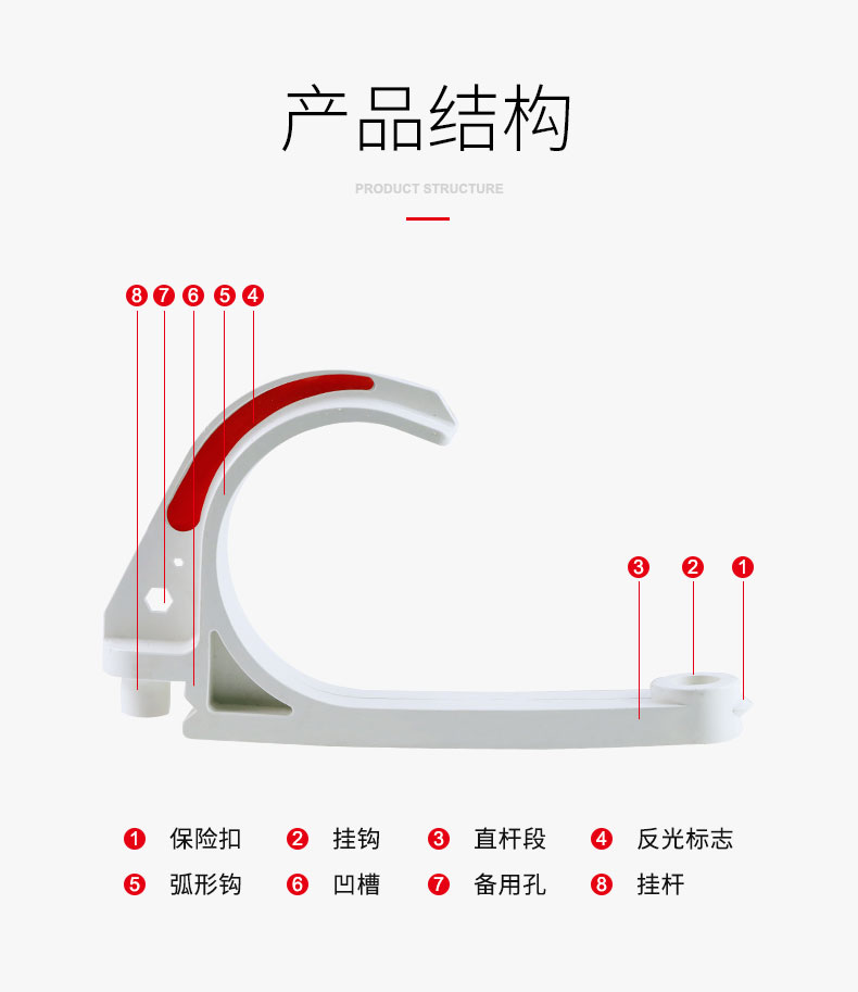 6、結(jié)構(gòu)簡單合理,使用靈活,可根據(jù)實際需要任意調(diào)整電纜掛鉤的數(shù)量。